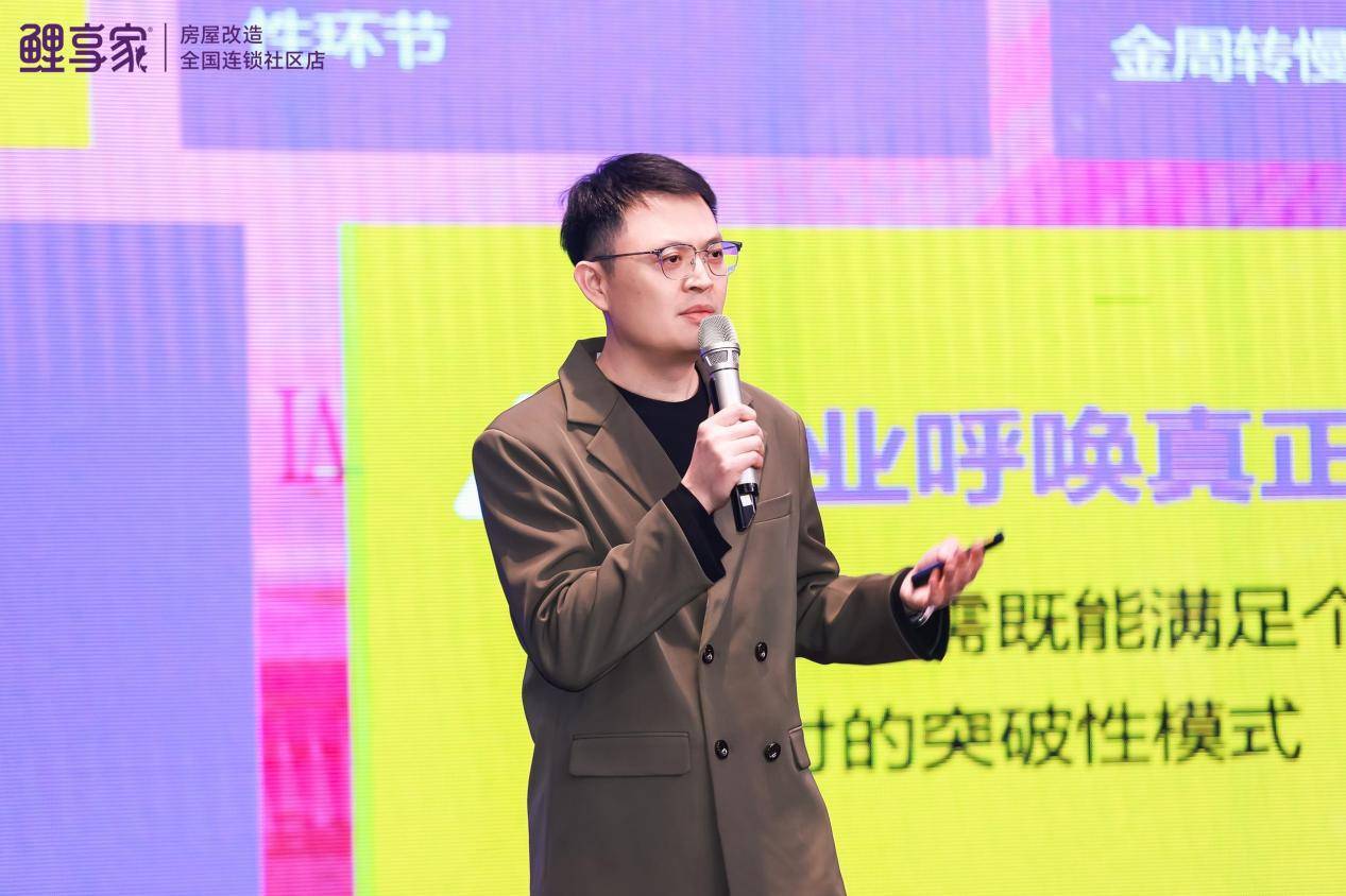 本觉设计创始人黄鑫先生在《熬出新店态:第六代社区店的坪效革命》演讲中,正式发布了鲤享家第六代旧改全场景店。该店态历经多层打磨,实现了四大升级:形象升级,完成从区域性到国际性品牌形象的转变;产品升级,覆盖轻装轻改、适老改造、智能改造等全场景产品矩阵;体验升级,通过模块化智能板块与会说话展厅,提升用户互动与感知;转化率升级,依托品牌调性与产品适配度,实现高效成交。