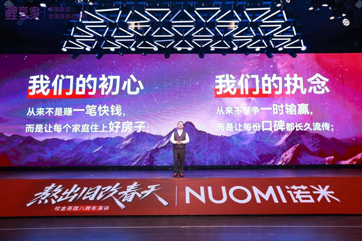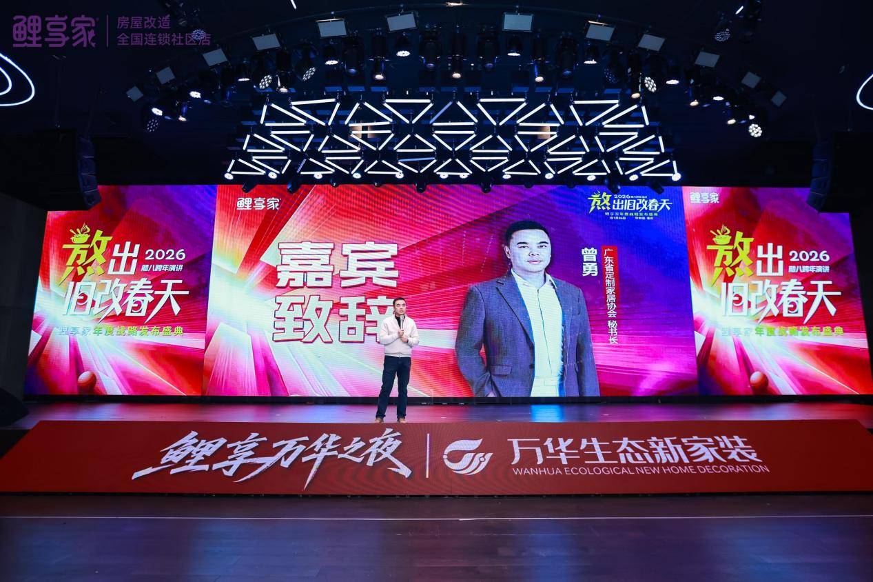 1月26日,以“熬出旧改春天”为主题的跨年演讲暨鲤享家年度战略发布盛典在重庆隆重举行。广东省定制家居协会秘书长曾勇、万华生态新家装集团董事长于文杰、广东诺米家居智能科技有限公司营销中心总经理曲锐等数十家战略合作伙伴,以及全国鲤享家门店、行业媒体等几百人齐聚山城,共同见证鲤享家董事长程宜峰先生跨年演讲及年度战略矩阵的发布,擘画旧改行业高质量发展新蓝图。