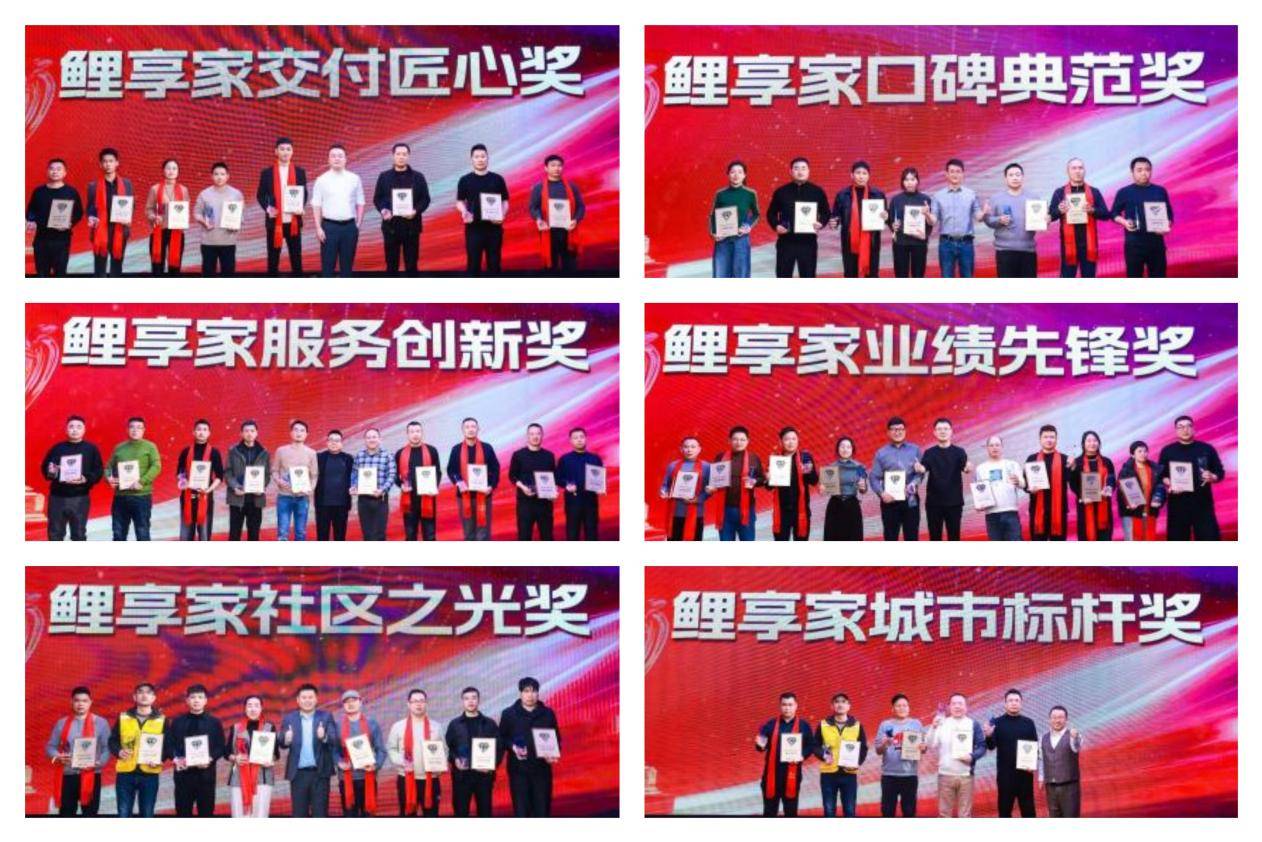 晚宴进行到了荣耀时刻,鲤享家总部对过去一年涌现出的优秀门店进行了表彰,颁发了“交付匠心奖、服务创新奖、社区之光奖、口碑典范奖、业绩先锋奖及城市标杆奖”六大奖项,给予合作伙伴充分的表彰与感谢。